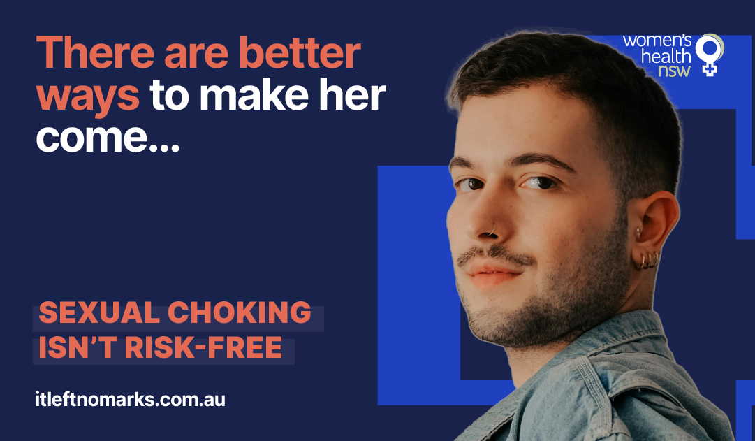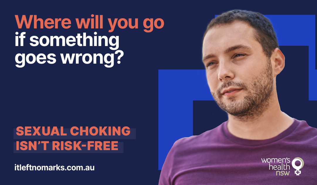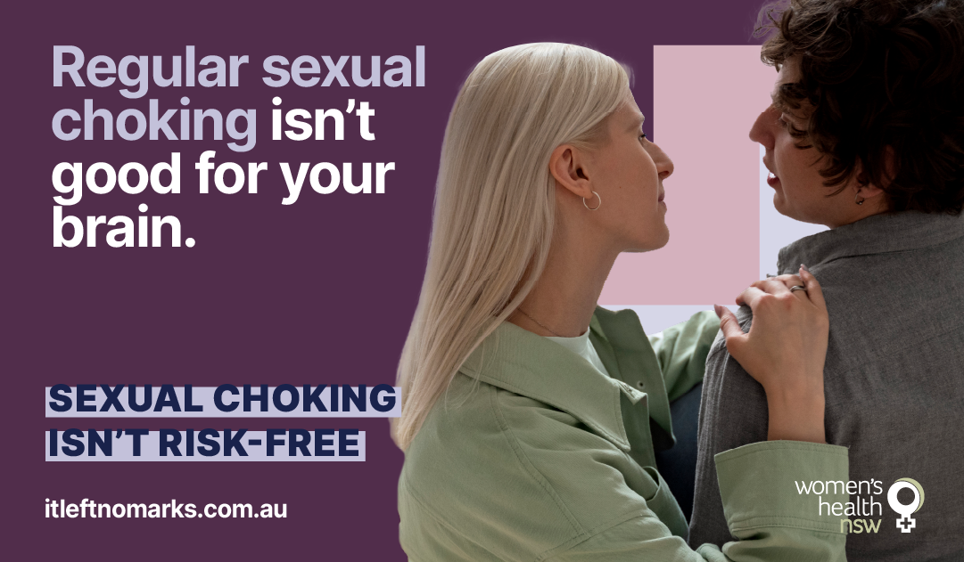 The digital environment normalises sexual choking, making it seem like everyone is doing it and that this sexual activity is risk-free. This can lead to situations where people are choked without specifically agreeing to it (sexual violence) as well as serious health consequences for the person being choked. This campaign will help you to let your audience know that every time you choke someone, or let someone choke you, there is a risk of serious injury, brain injury and death. We’re using the terminology ‘sexual choking’ because that’s the term most often used by people engaging with this sexual practice. The goal of this campaign is to reduce negative consequences for people who engage in, or are considering engaging in the practice.