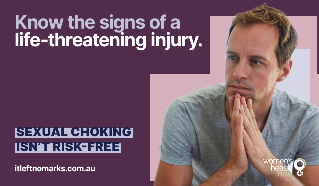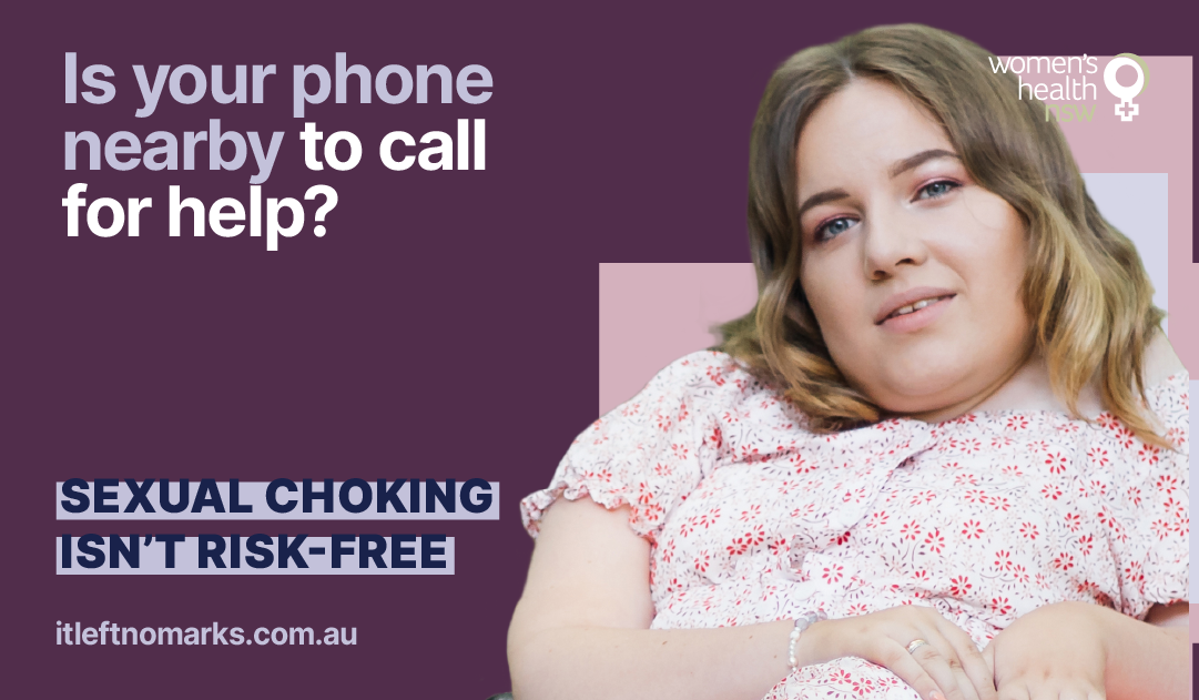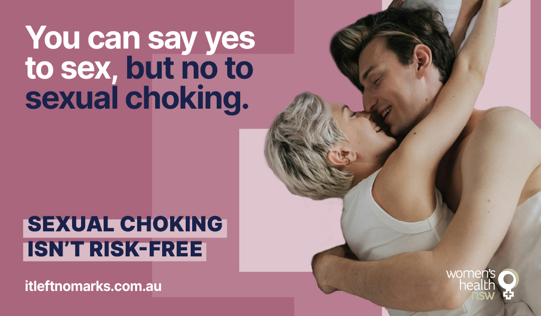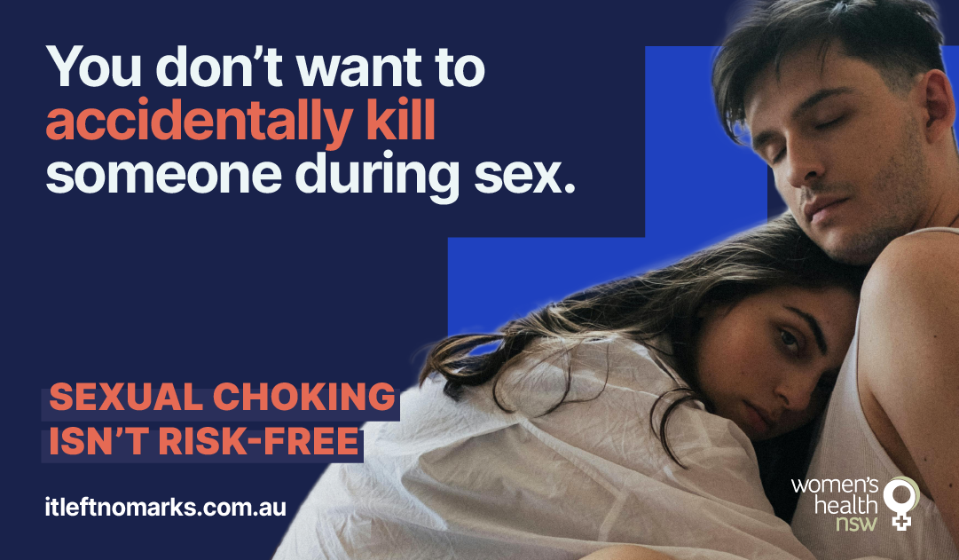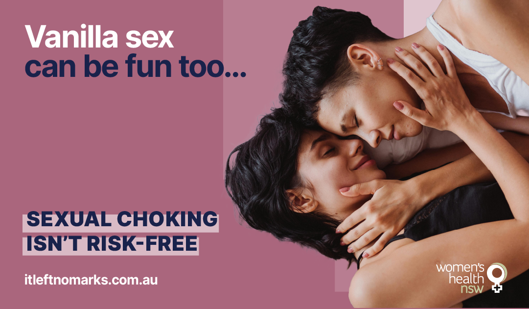 This is a social media health promotion campaign about sexual choking. This harm reduction campaign is designed to build community knowledge relating to the risks of sexual choking, and support help-seeking behaviour. The evidence-informed approaches taken in each social media tile are drawn from Sexual choking: A health promotion approach